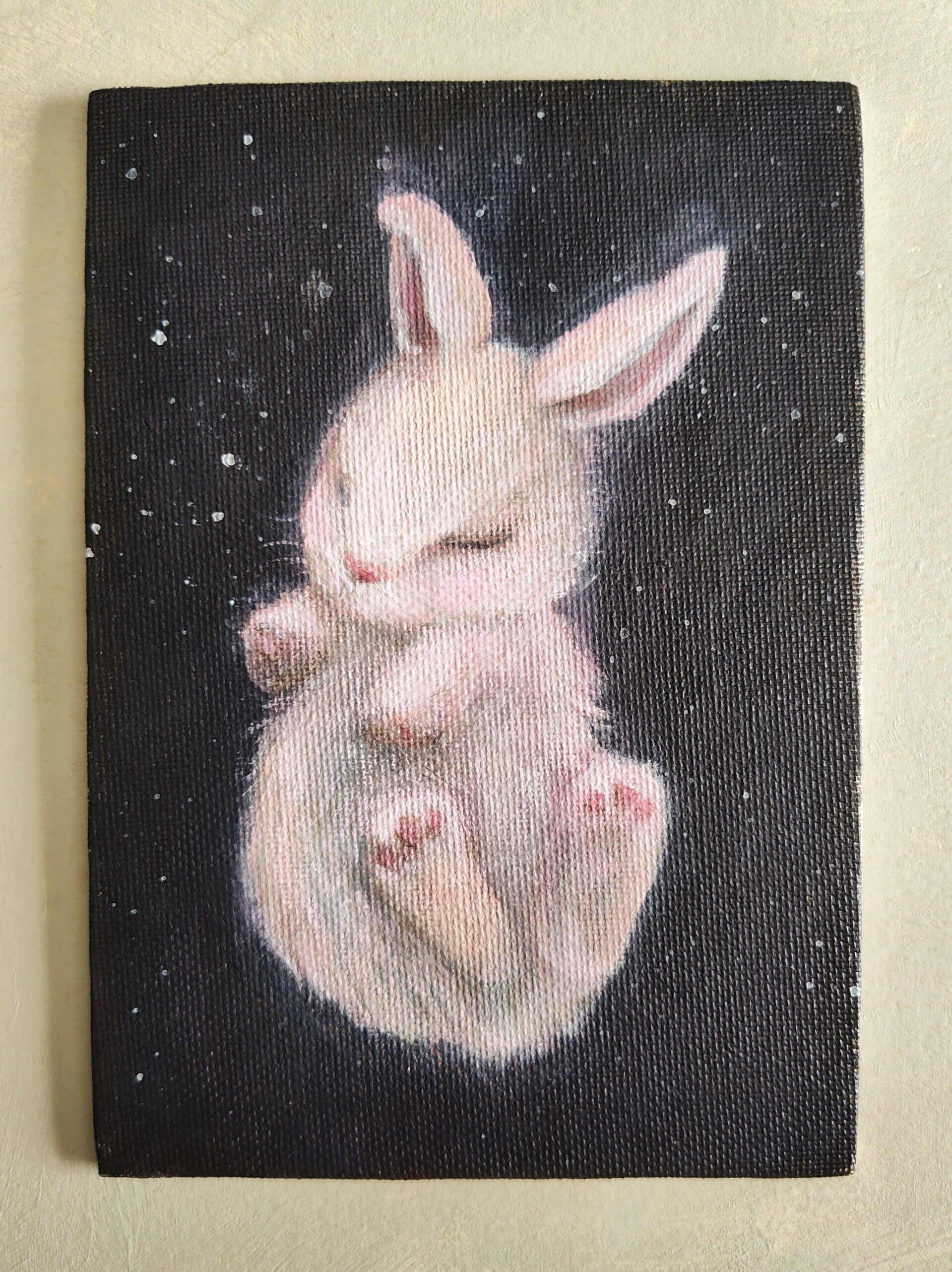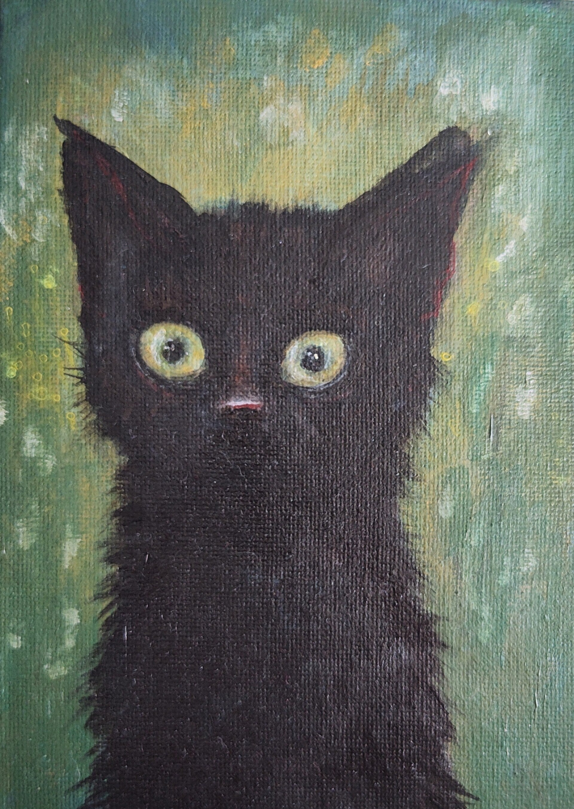 In 2025 I did a lot of these little ATC (2.5 x 3.5 inch) paintings of black kittens wearing hats.