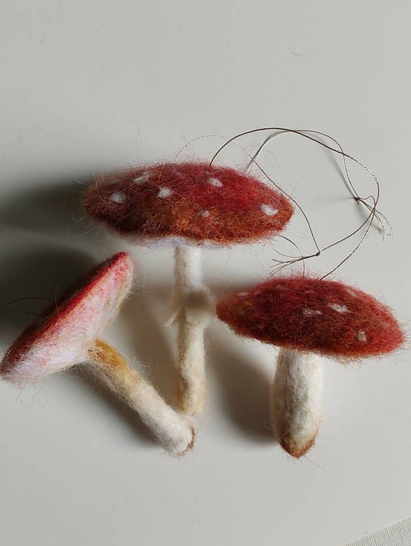 One of a kind needle felted ornaments, all my original artwork. Little textile sculptures you can hang on a tree or anywhere you please.